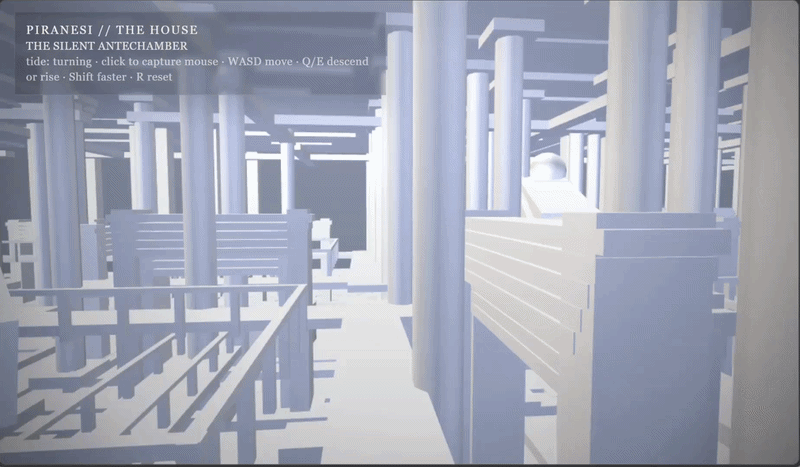 ![]() GPT-4: "the book Piranesi as a p5js 3d space. do it for me" | ![]() GPT-5.4 Pro: same prompt plus one to "make it better." |